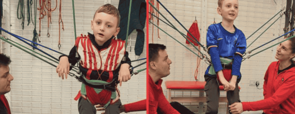 The progress that Lewie has made has had such an impact on himself and his family. His Mum Katy said: “As soon as Lewie went in the Spider cage with the bungees was an emotional one, Lewie hadn’t stood tall like that for over a year.